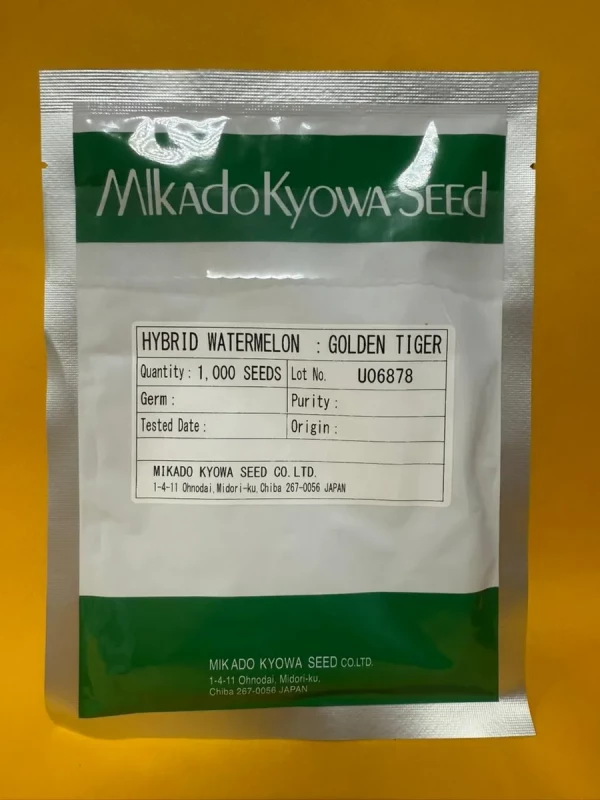 Арбуз Голден Тайгер F1 (Golden Tiger) — раннеспелый диплоидный гибрид с необычной жёлтой мякотью от компании Vilmorin-Mikado Kyowa Seeds. Созревает за 60–65 дней после высадки рассады. Отличается стабильной завязываемостью плодов даже при низких температурах и недостатке света, что делает его подходящим для выращивания в разных регионах.