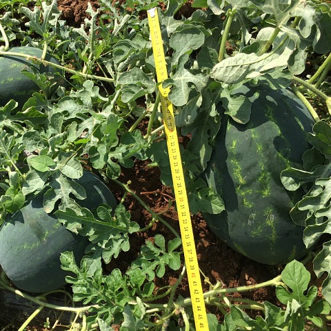 Плоды округло-овальной формы, однородные, с привлекательной темно-зеленой корой в полоску типа Кримсон Свит. Средняя масса 6-8 кг. Мякоть интенсивно-красная, хрустящая, очень сладкая — содержание сахара достигает 13-14% по шкале Брикса, с выраженным ароматом. Гибрид демонстрирует отличную транспортабельность и лежкость, что делает его идеальным для поставок в торговые сети и на рынок свежей продукции.