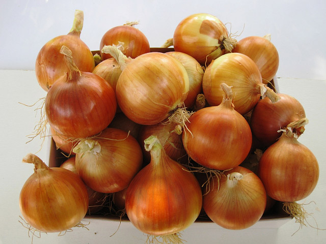 Луковицы округлой формы, очень плотные, выровненные, диаметром 60-80 мм (средне-крупные). Сухие покровные чешуи имеют привлекательный бронзово-коричневый цвет, сочные чешуи — белые. Шейка тонкая, хорошо подсыхающая, что обеспечивает качественное хранение. Гибрид демонстрирует стабильно высокую урожайность — 80-100 т/га (до 13 кг/м²), отлично подходит для механизированной уборки и длительного хранения (до 4 месяцев, до февраля-марта).