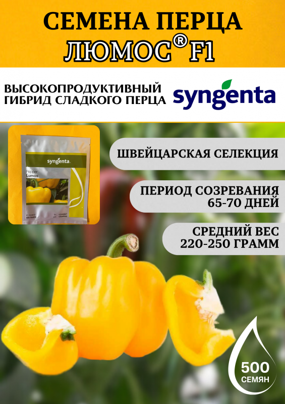 Люмос F1 — высокопродуктивный гибрид сладкого перца от компании Syngenta (Голландия). Ранний срок созревания, выровненные плоды с высокими товарными качествами и универсальность выращивания делают его оптимальным выбором для получения гарантированного урожая.